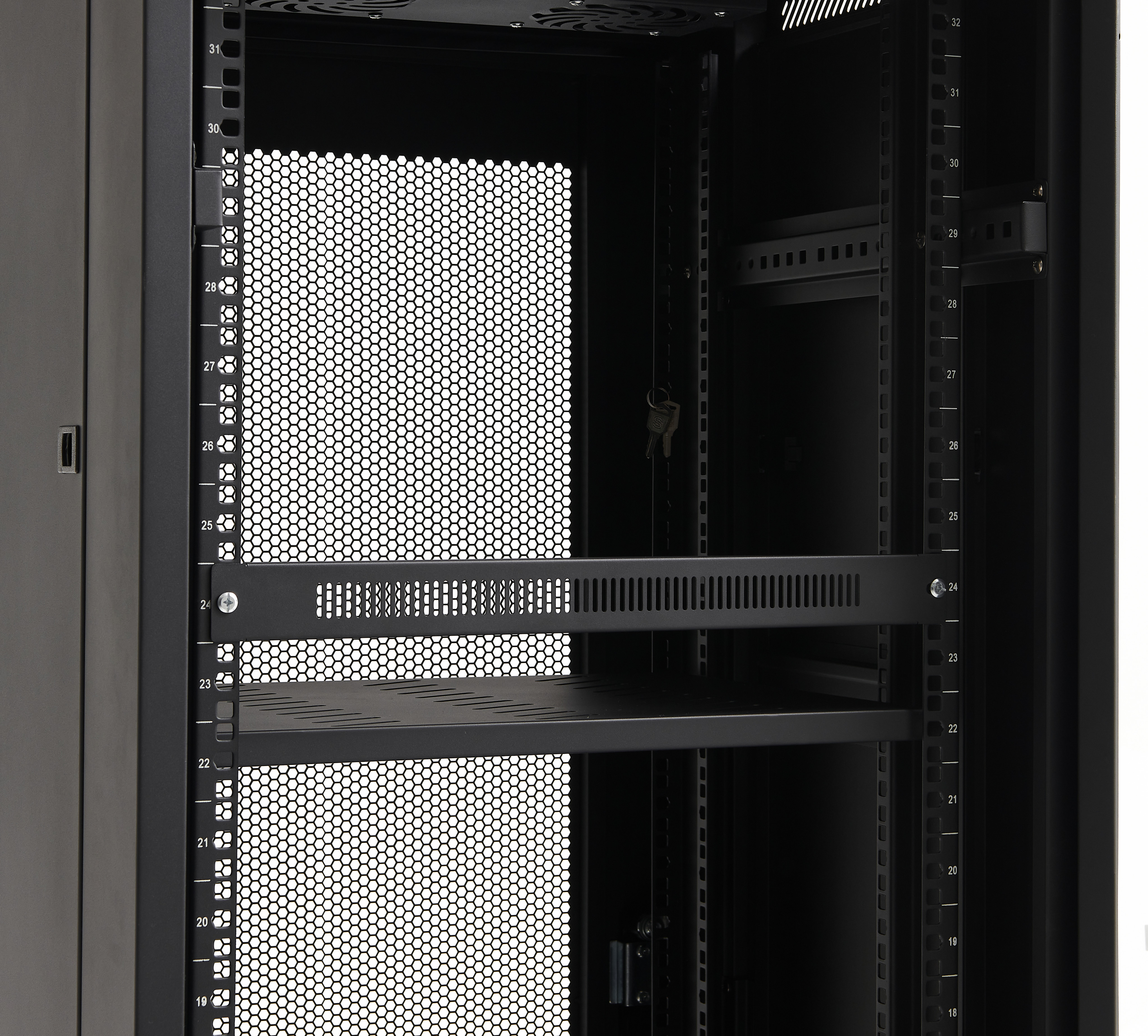 Zaslepovací panel pro 19" rack systémy s odvětrávací perforací.