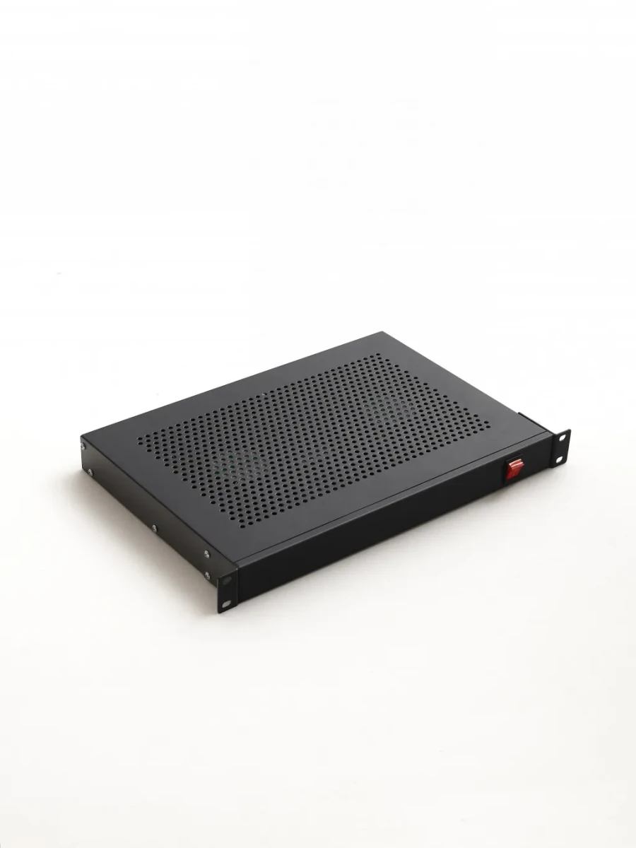 Odvětrávací modul s výkonnými tichýni ventilátory pro 19" rack systémy s regulací termostatem.