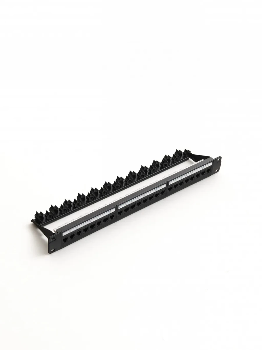 Rozvodný 1U panel pro 24 cat6 konektorů pro 19" rack systémy.