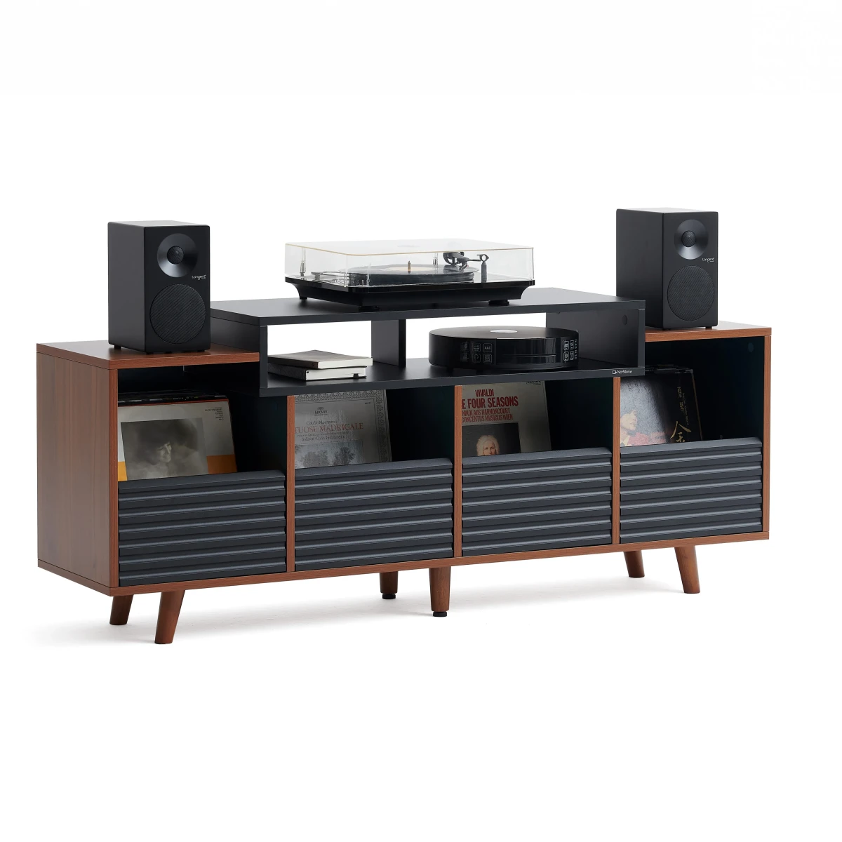 Stylový regál na gramofon, zesilovače a pohotovostní zásobu Vašich oblíbených vinylových desek.