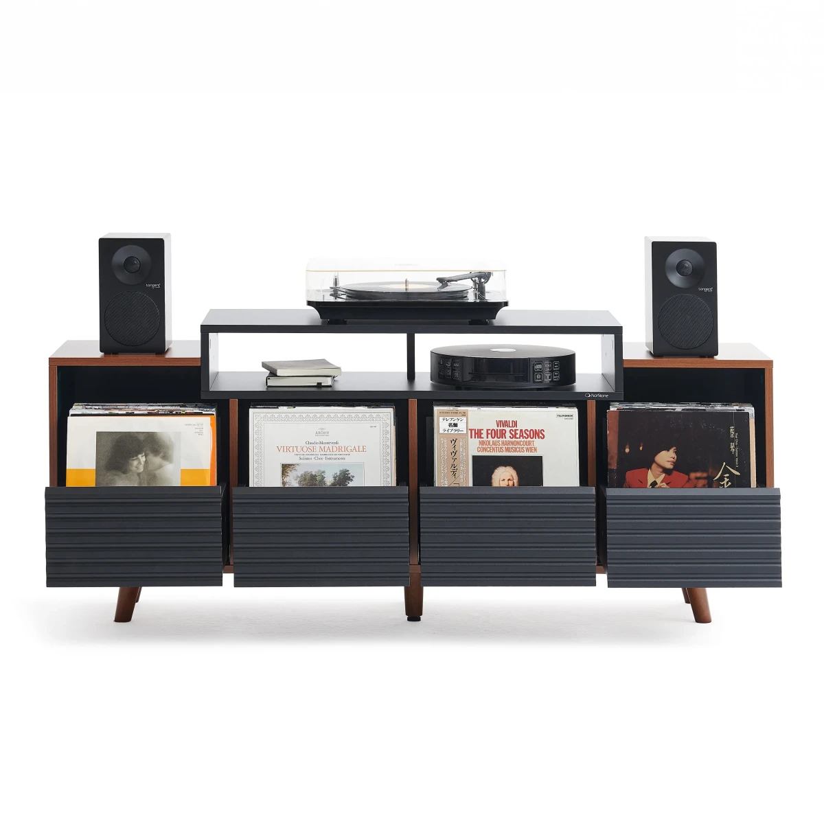 Robustně provedené zásuvky spolehlivě pojmou spoustu LP, čímž doma ušetříte velký prostor.