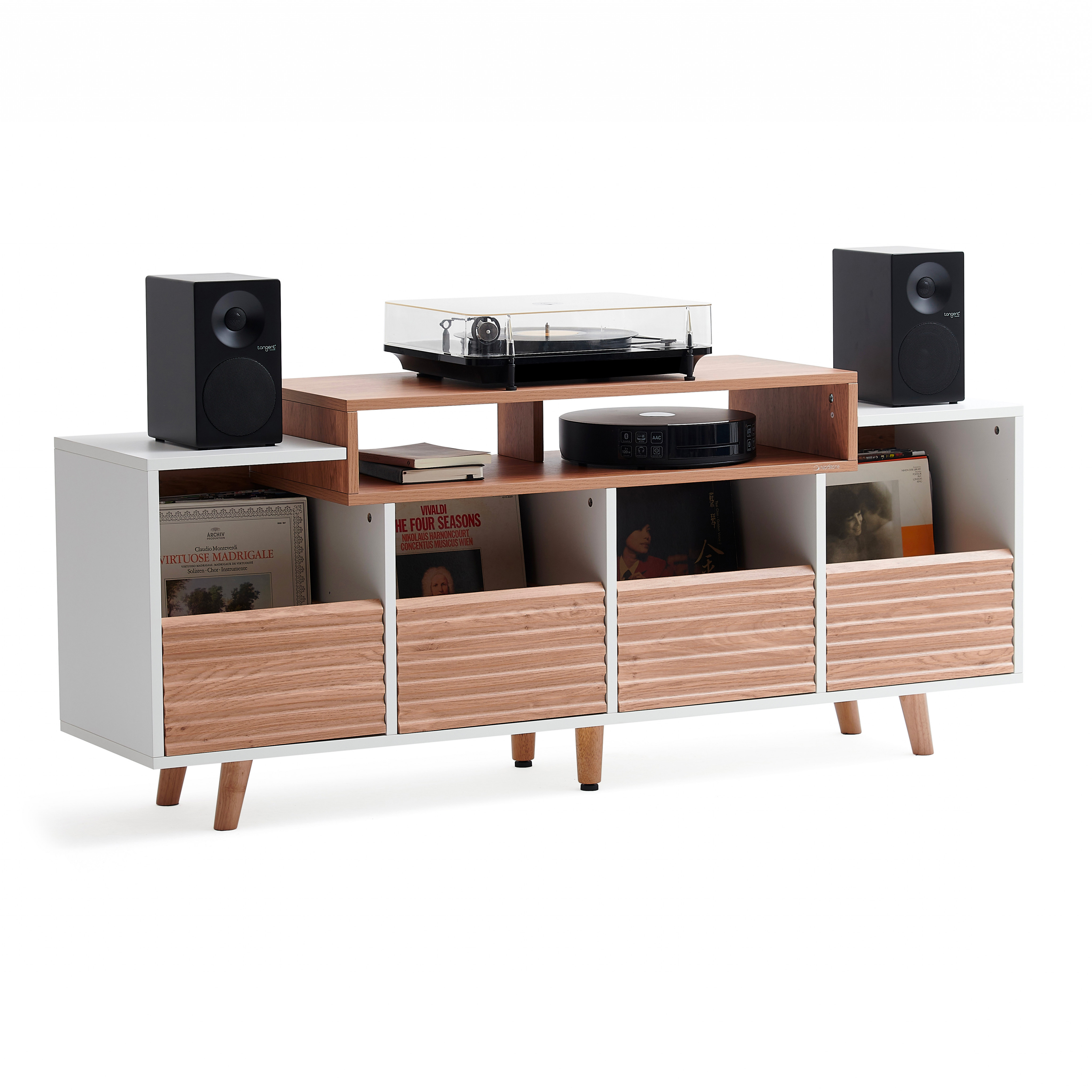 Stylový regál na gramofon, zesilovače a pohotovostní zásobu Vašich oblíbených vinylových desek.