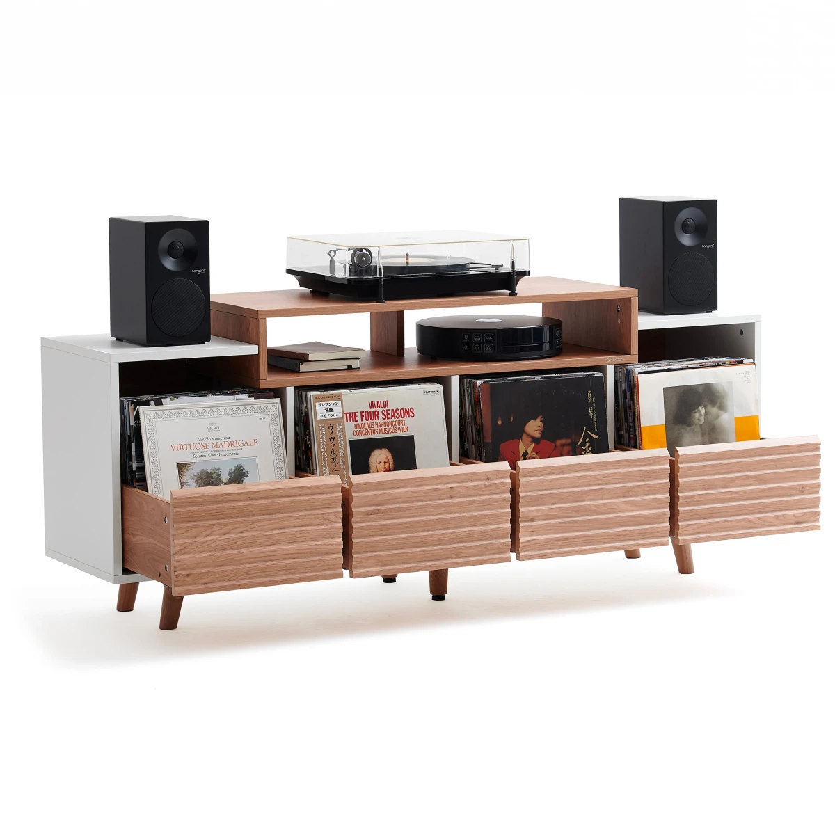 Robustně provedené zásuvky spolehlivě pojmou spoustu LP, čímž doma ušetříte velký prostor.