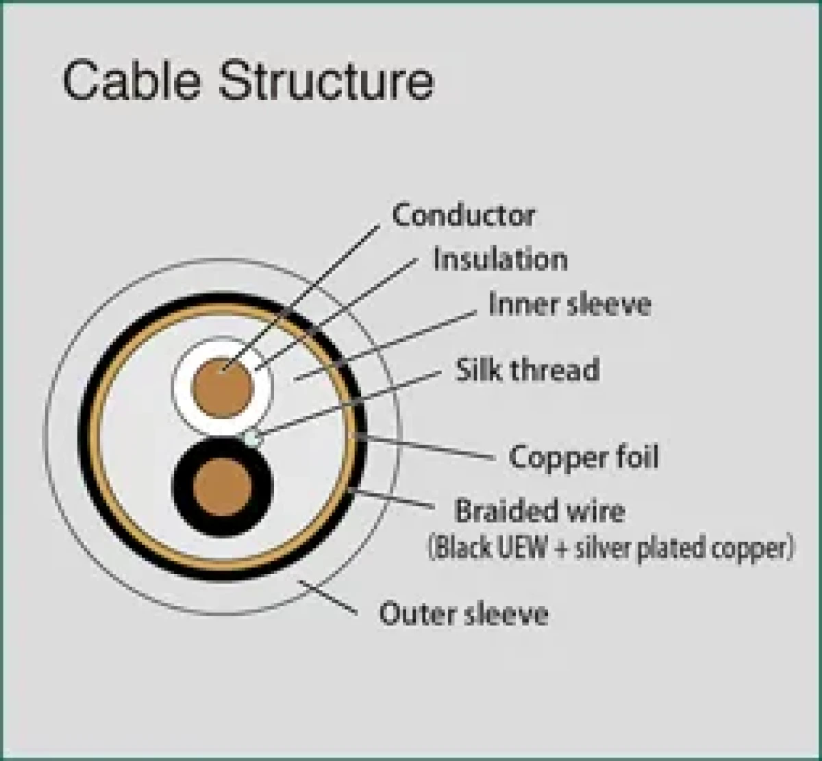 Shielding : Copper foil tape + sliver plated copper wire + black UEW
