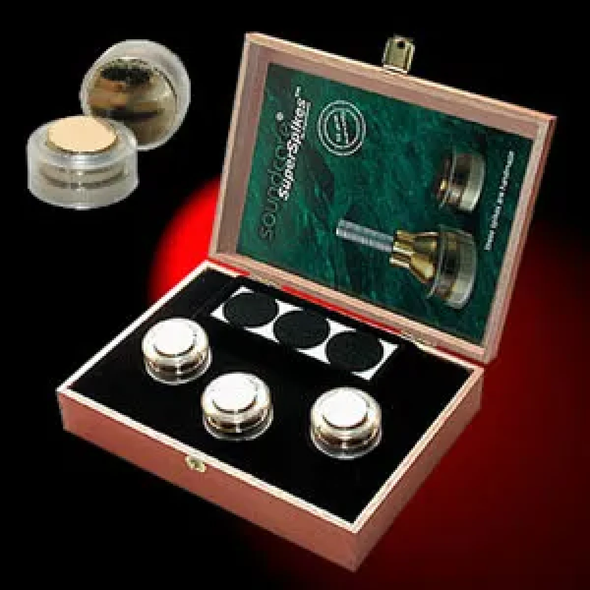 Podložka určená na přilepení k reprosoustavě či komponentu pomocí folie 3M. Provedení High End (tvrdě zlacené 24K zlatem).